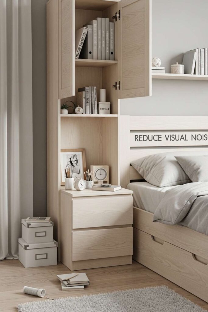 A cluttered environment constantly signals the brain to stay alert. Even small objects scattered on nightstands, shelves, or floors create visual noise that prevents the mind from settling.