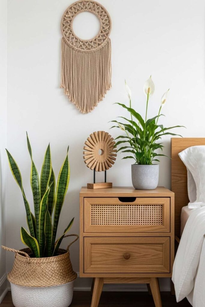 Plants such as snake plants or peace lilies are especially suitable for bedrooms because they require minimal care and contribute to cleaner air. Even one plant can change how the room feels emotionally.